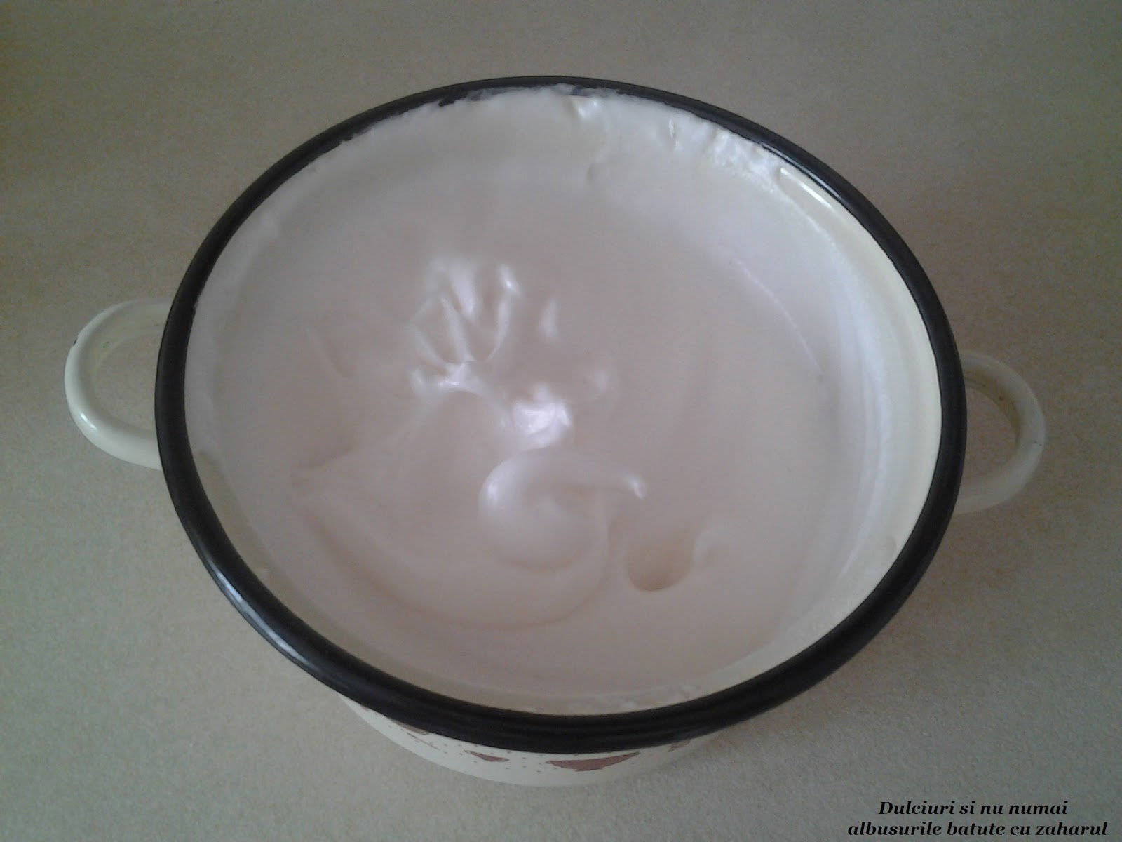 se bate spuma pana ce se topeste zaharul si mai apoi se adauga urmatoarea